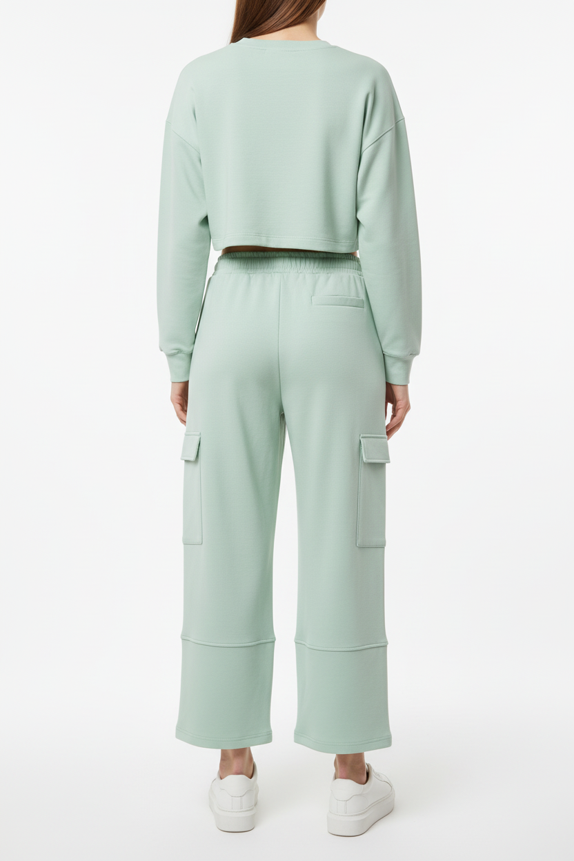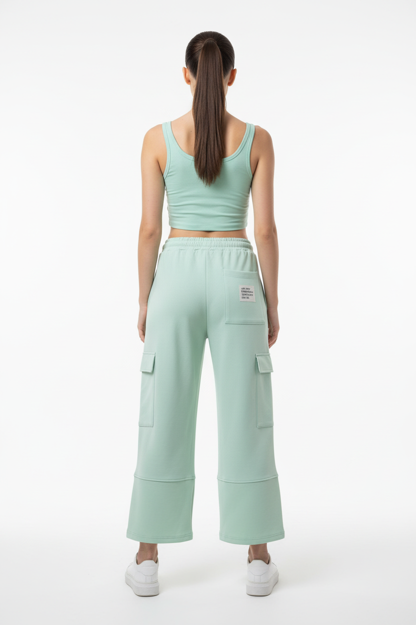 Ontdek de perfecte balans tussen comfort en stijl met deze mintgroene wide-leg cargo broek. Het zachte, frisse kleurenpalet maakt deze broek een veelzijdige toevoeging aan je garderobe, perfect voor zowel casual als smart-casual looks.